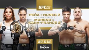 Domenica 31 luglio / 4.00 AM CET / American Airloines Center Dallas Stati Uniti: (#C)Julianna Pena (22-1-0) VS (#1)Amanda Nunes (15-5-0) Bantamweight division (pesi gallo)