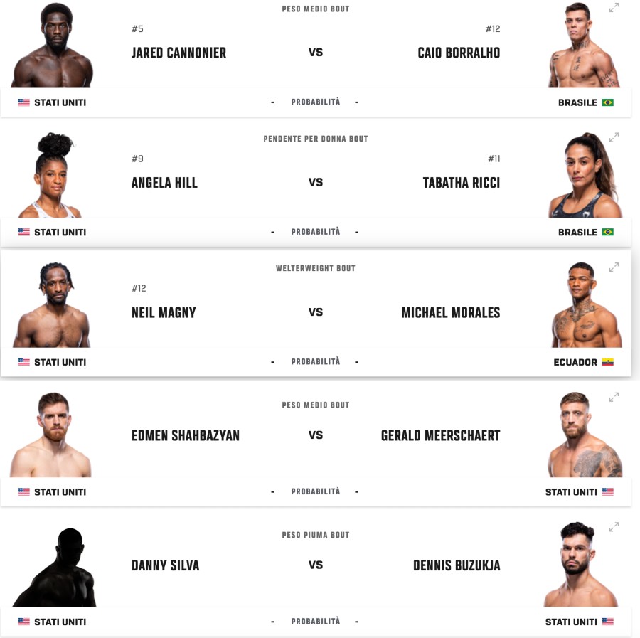 UFC Fight Night Cannonier vs Borralho scommesse e pronostici.